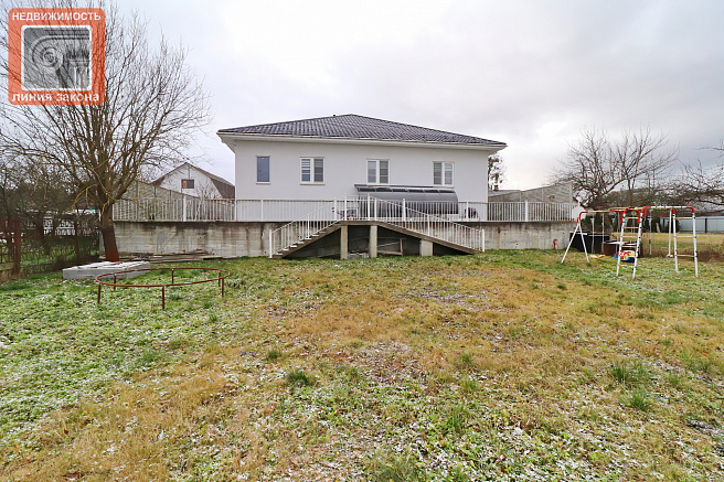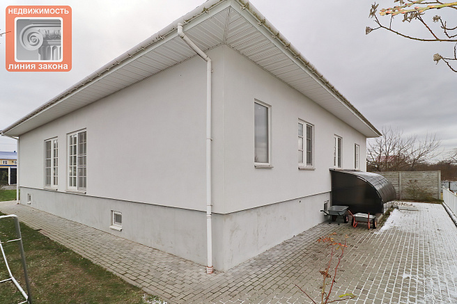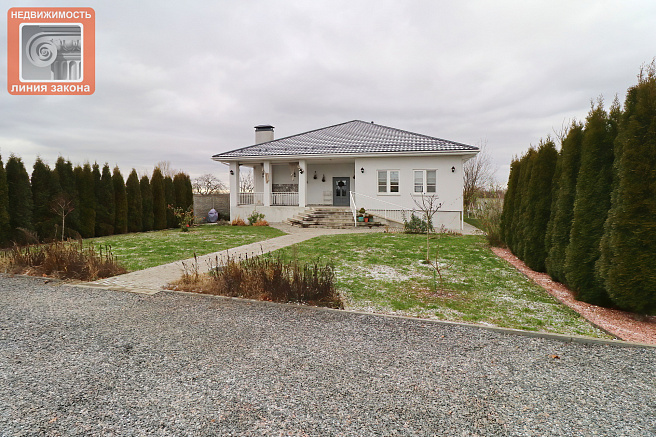 Одноэтажный современный жилой дом площадью 171кв.м. в поселке Поляна Чёнковского сельсовета. Продуманная и комфортная планировка: просторная гостиная с зоной отдыха, столовой и кухонной зоной. 2 санузла с душевой и ванной, 5 изолированных жилых комнат. Под 1 этажом полноценный отапливаемый цокольный этаж с прачечной, котельной, кладовой, иными помещениями, которым только предстоит дать свое назначение: спортзал, бильярдная сауна, мастерская, может быть что-то еще... Продуманное расположение дома на участке, задний двор, крыльцо-терраса для летнего отдыха, парковочные места на несколько автомобилей как на участке, так и перед ним, река "за забором". Как по территории участка, так и в доме разведено в предостатке электропроводка для удобного управления освещением в различных вариациях, в том числе с проходным включением. Если вы действительно хотите купить современный дом вблизи города, но в тишине и вблизи природы, то этот дом - именно такой вариант.