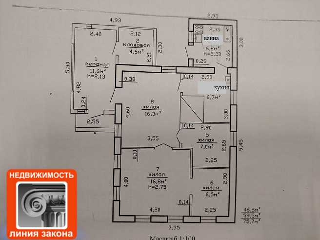 - дом 1971 года постройки без ремонта по современным стандартам; - общая площадь по СНБ - 75,5 м.кв., общая площадь жилого помещения – 59,5м.кв., жилая площадь – 46,6м.кв.; - в доме отопление от газового котла, имеется русская печь; - центральный водопровод, местная канализация; - кухня 6,7 кв.м; - совмещенный санузел; - установлены счётчики воды, света, газа; - площадь земельного участка 5,5 соток; - на участке имеется два кирпичных сарая. Обмен не рассматриваем. Заявка на просмотр |