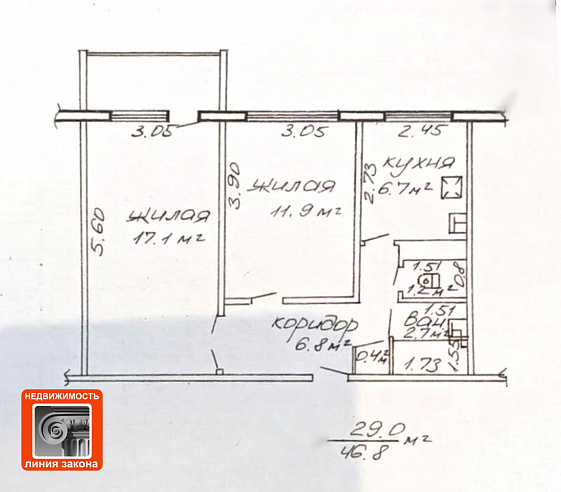 Цена за кв.м: 2 798 бел. руб. Эквивалент цены (справочно) по курсу НБ РБ: За объект: 44 000 дол. США За 1 кв.м. 940 дол. США Все расчеты по сделке в соответствии с законодательством производятся в белорусских рублях
